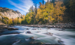 10月: 喀纳斯的白桦林、南疆的胡杨。